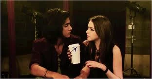 Assim que Beck termina o ensaio, ele vai até a Jade que estava sentada em uma das cadeiras, e coloca as duas mãos nos ombros dela, ele parece olhar para o que ela escrevia em seu celular.