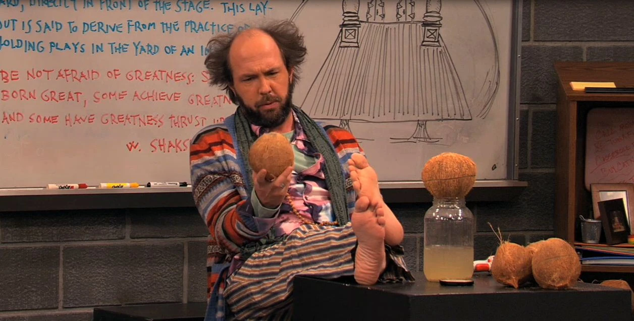 Sikowitz: And I've never done a standing backflip, but watch this. (attempts backflip) Yeeeeeeah! (lands on his face)